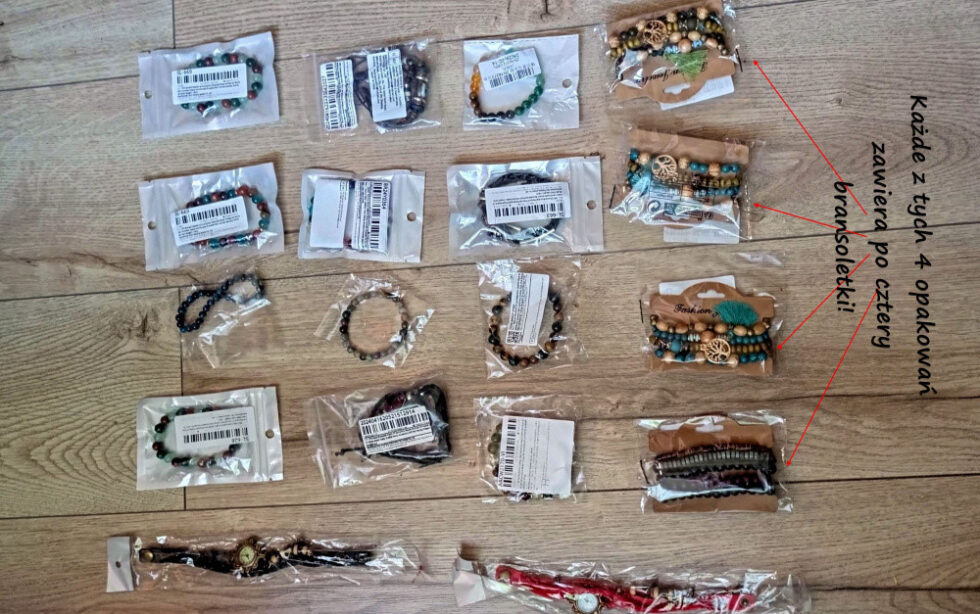 Opakowania zaznaczone strzałką na zdjęciach zawierają po 4 bransoletki!