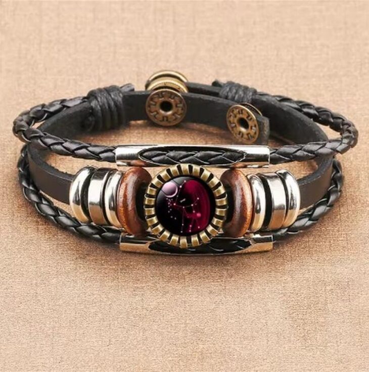 Do sprzedania nowa, nienoszona zapakowana bransoletka: Konstelacja Znak Zodiaku. Czarna pleciona skórzana bransoletka damsko/męska znak Virgo (Panna).